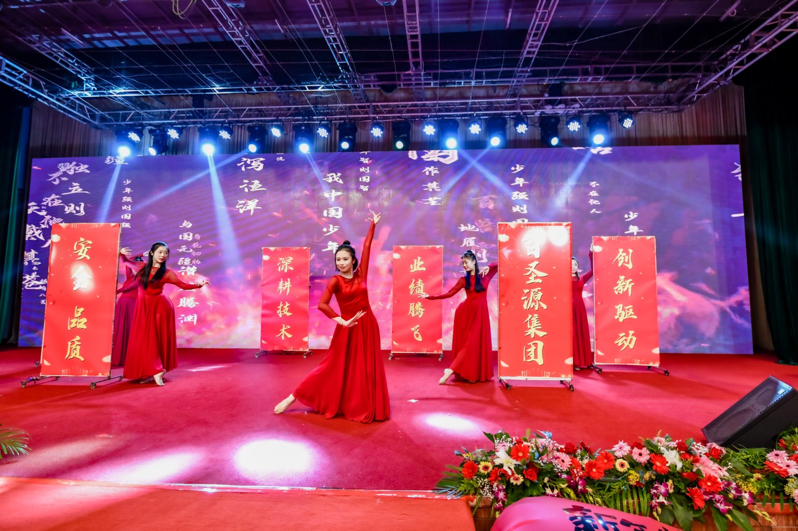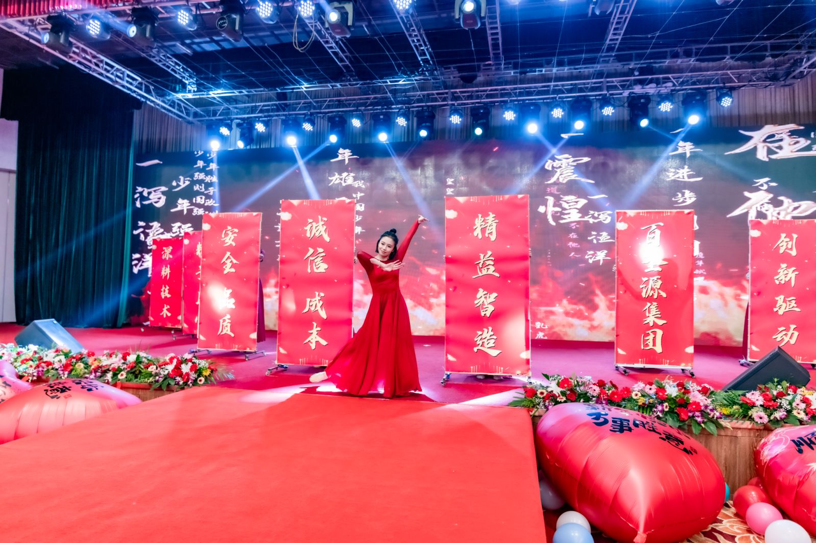 舞蹈的编排创意十足,令人眼前一亮。通过巧妙的队形变换、独特的舞台设计和富有节奏感的动作编排,营造出了一种大气磅礴、振奋人心的氛围。“深耕技术”、“创新驱动、“精益制造”等彰显了百圣源的精神,致力于做世界一流的胶合板服务商、制造商。