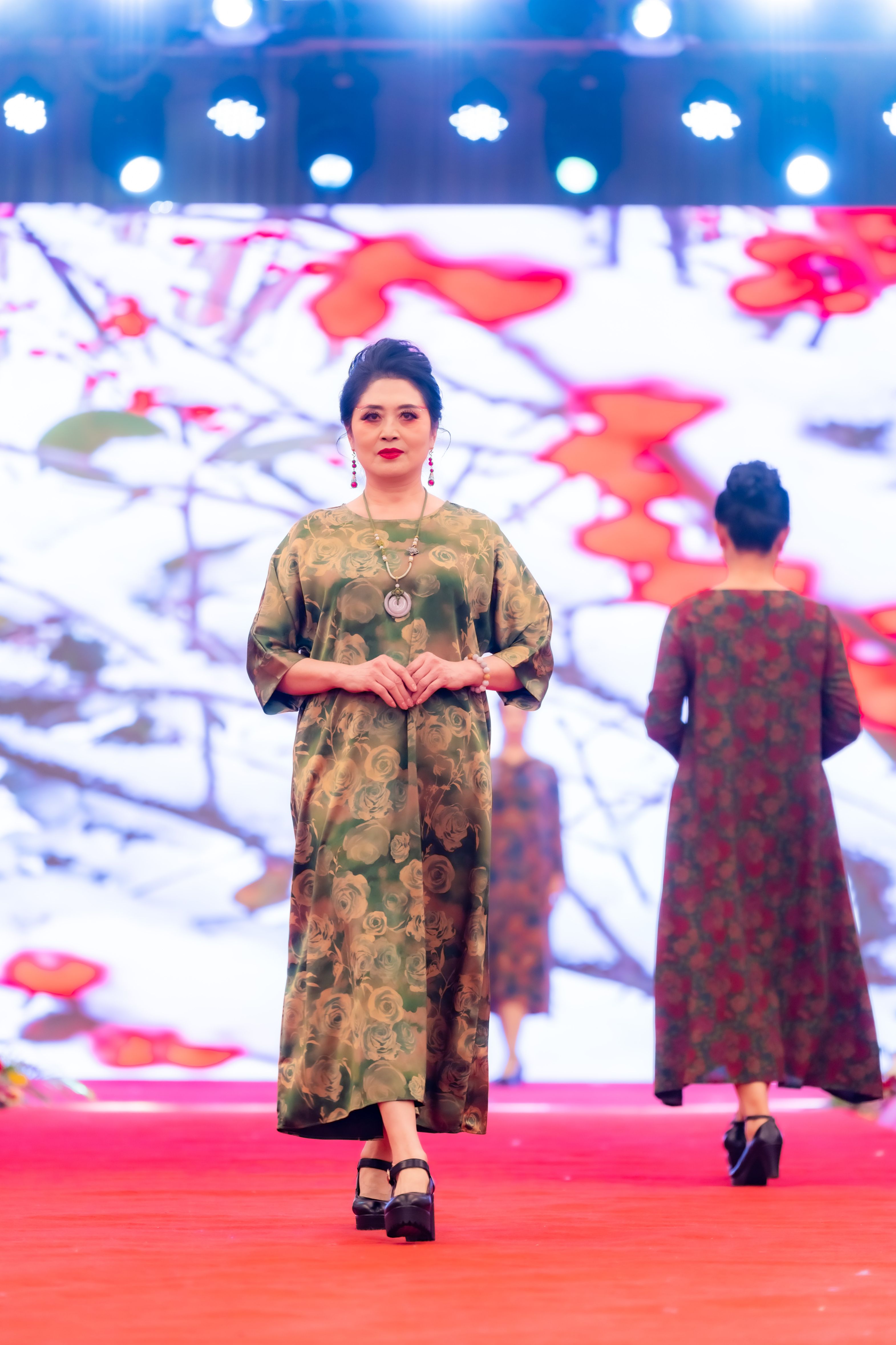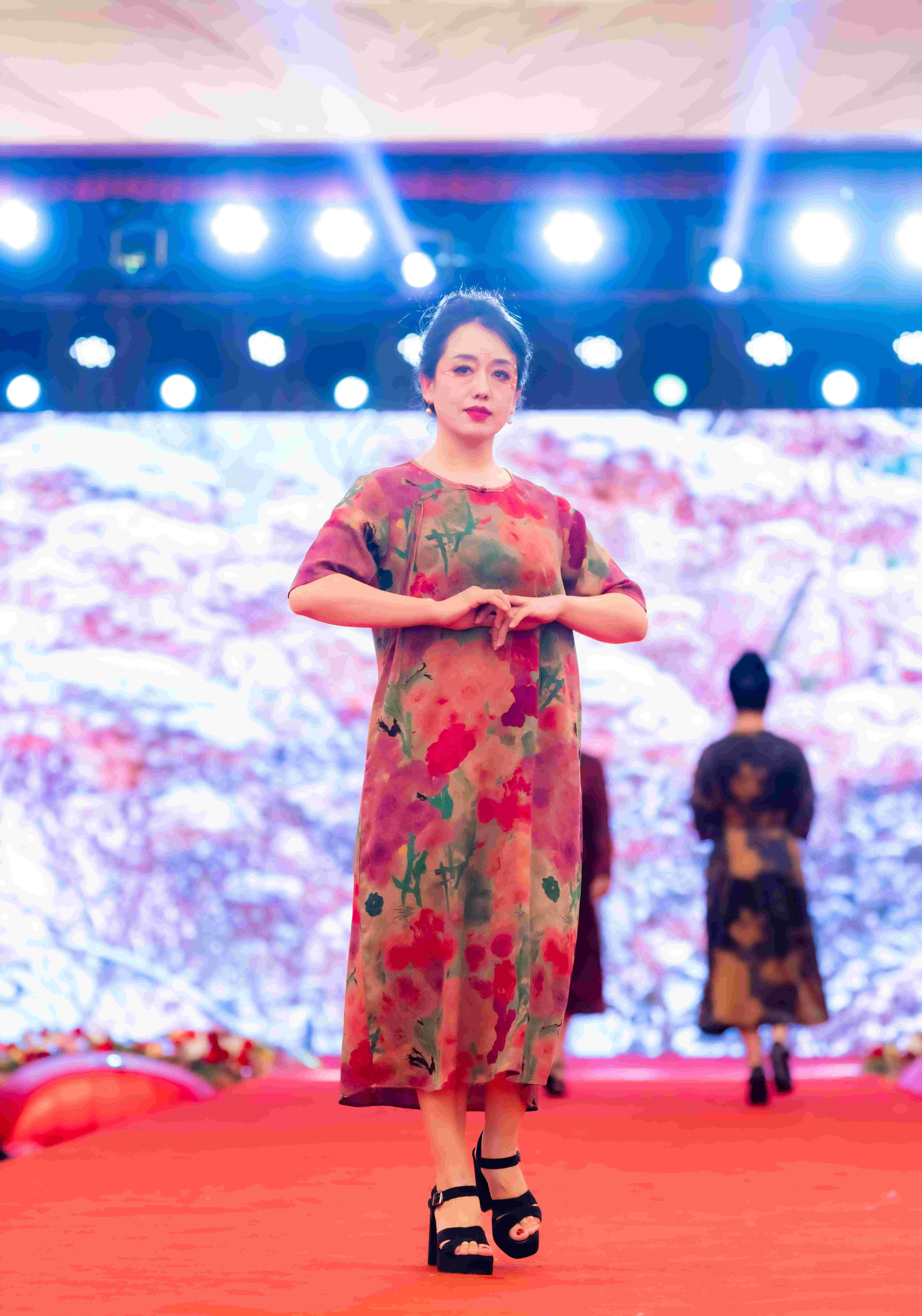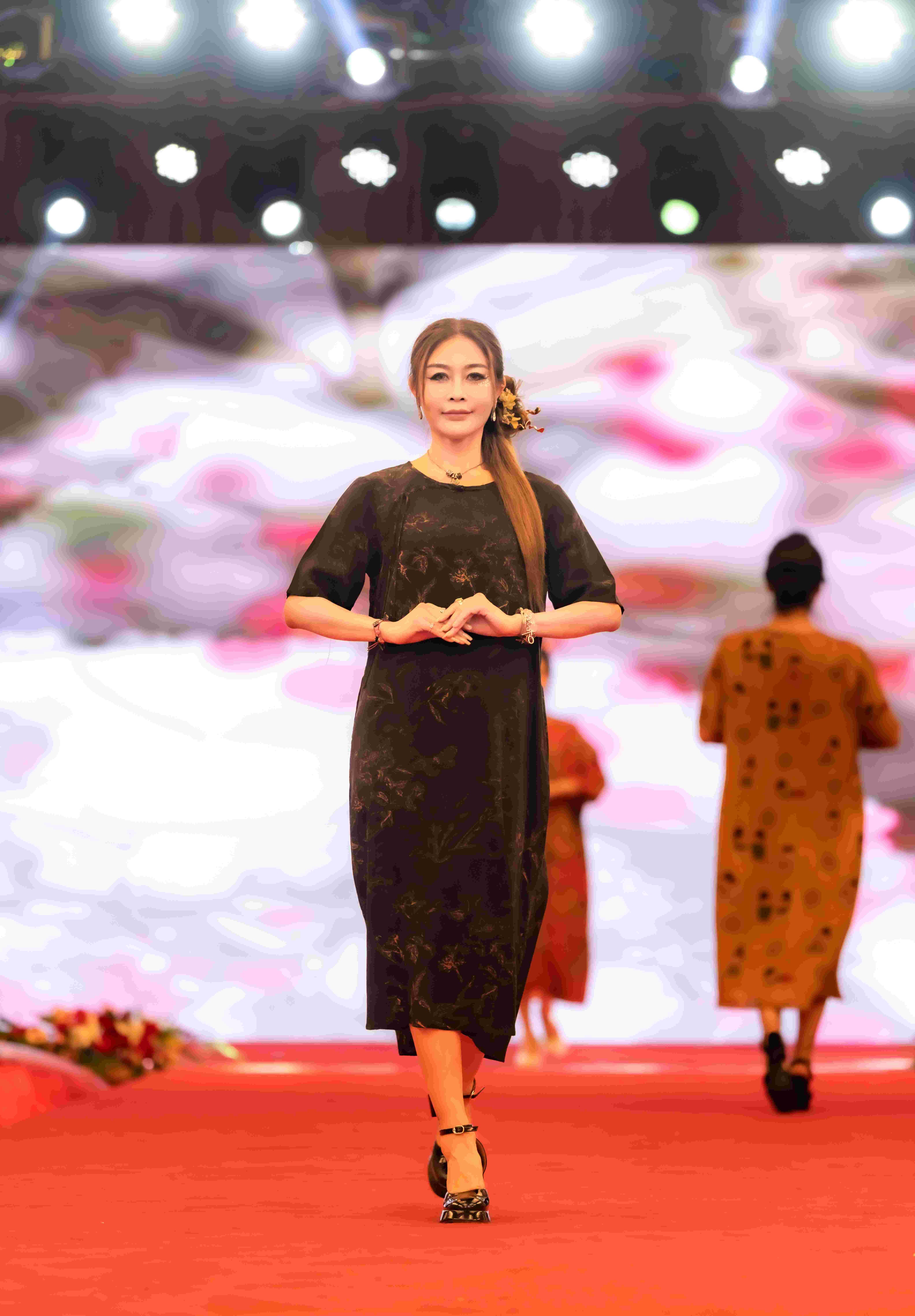当模特们身着香云纱服饰一一登场,仿佛带领我们穿越千年时光,走进了历史与现代交织的奇妙画卷。每一步都踏在文化与时尚的交融点上,让人沉浸其中,如痴如醉。每一个步伐、每一个转身,都仿佛带着香云纱独有的韵律,让我们看到了香云纱在不同风格下的多样风情,让我们目睹中国非物质文化遗产服饰文化的独特魅力。