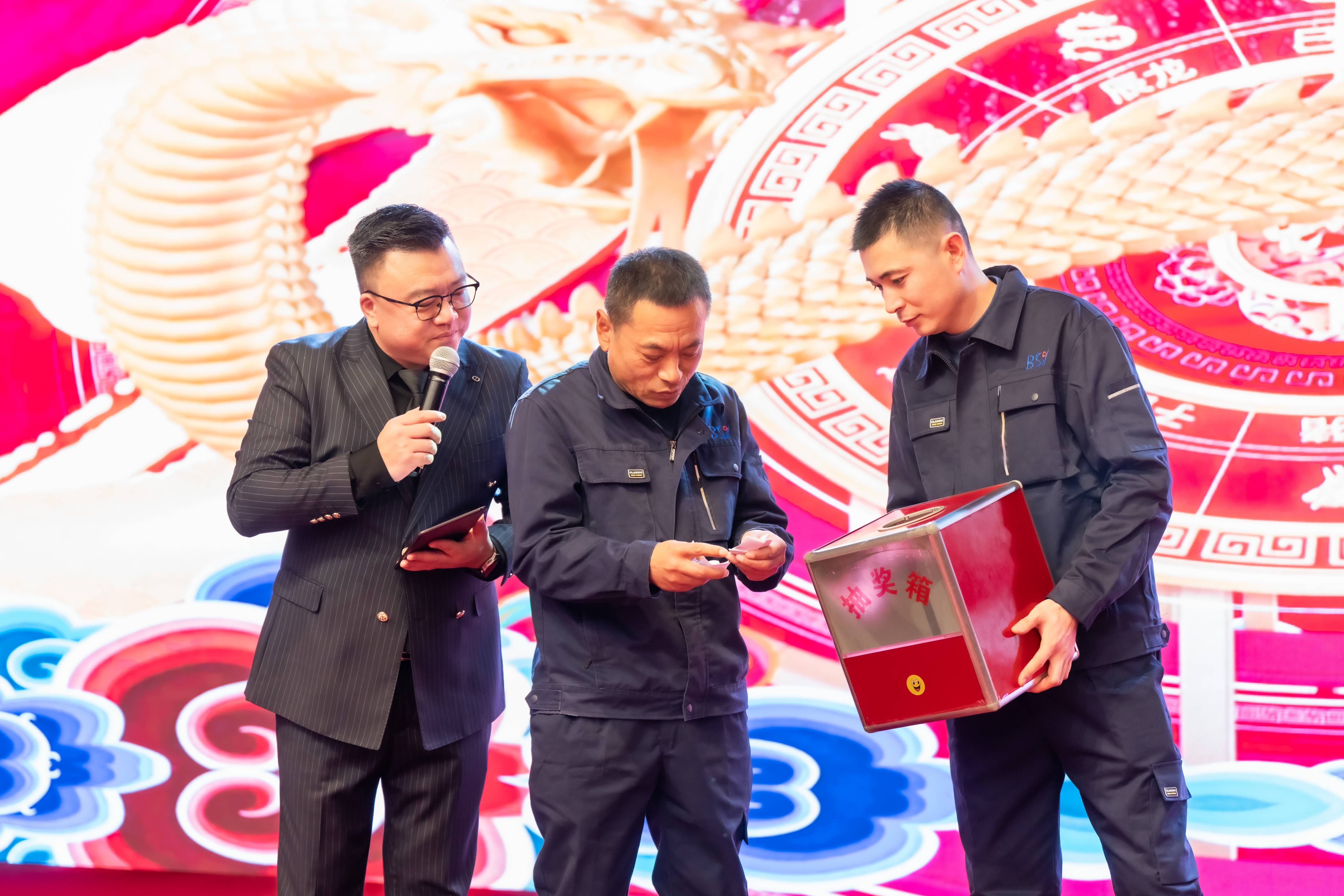 一年一度备受瞩目的年会盛典,抽奖环节无疑是全场的焦点,将年会的气氛推向了高潮,为全体员工带来了无尽的欢乐与惊喜。随着一个个中奖号码被公布,现场气氛一次次被推向高潮。中奖的员工兴奋地从座位上站起来,脸上洋溢着惊喜和自豪的笑容,在众人羡慕的目光中,迈着轻快的步伐走向舞台领奖。而未中奖的员工也并未气馁,依然热情高涨,期待着下一轮抽奖。