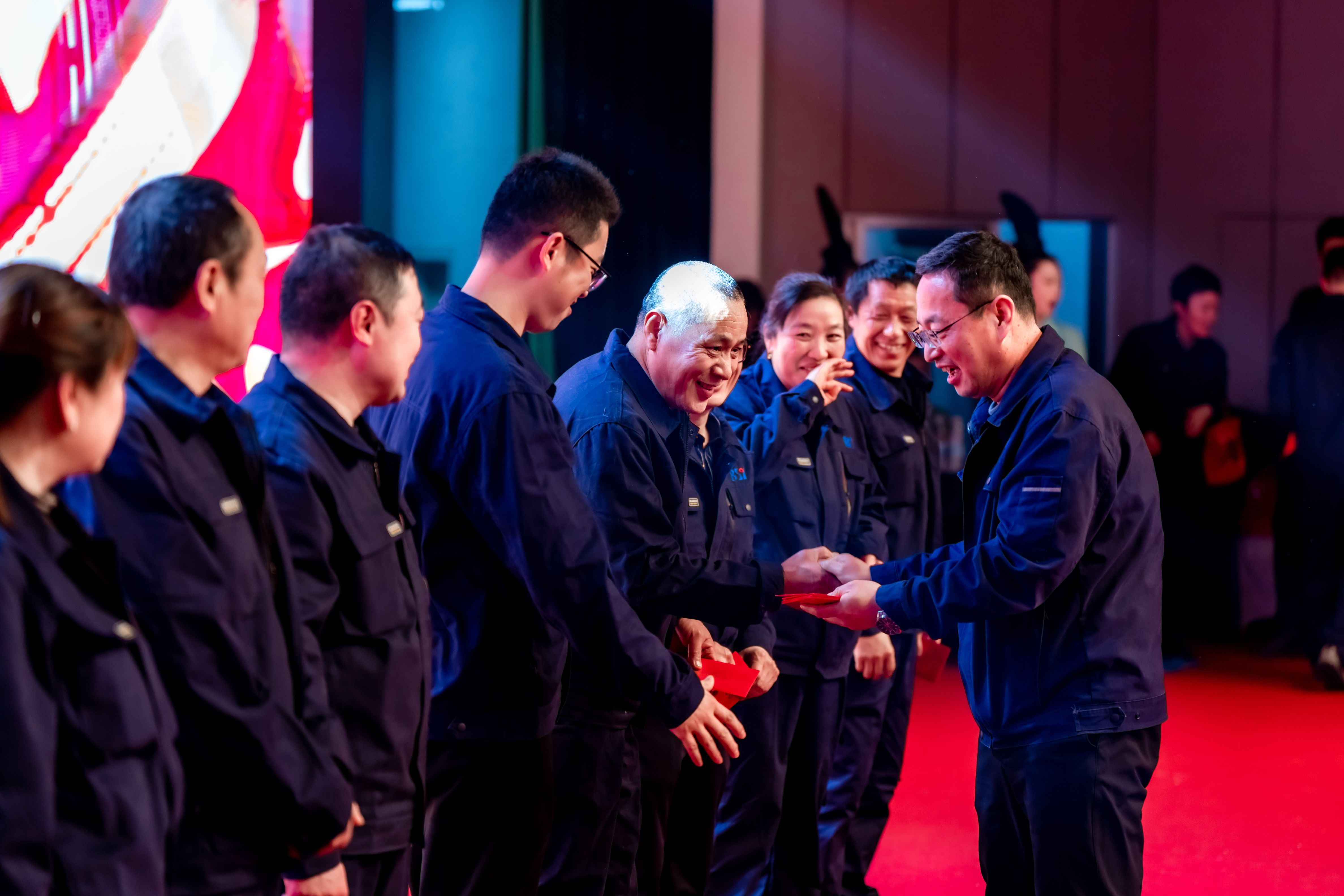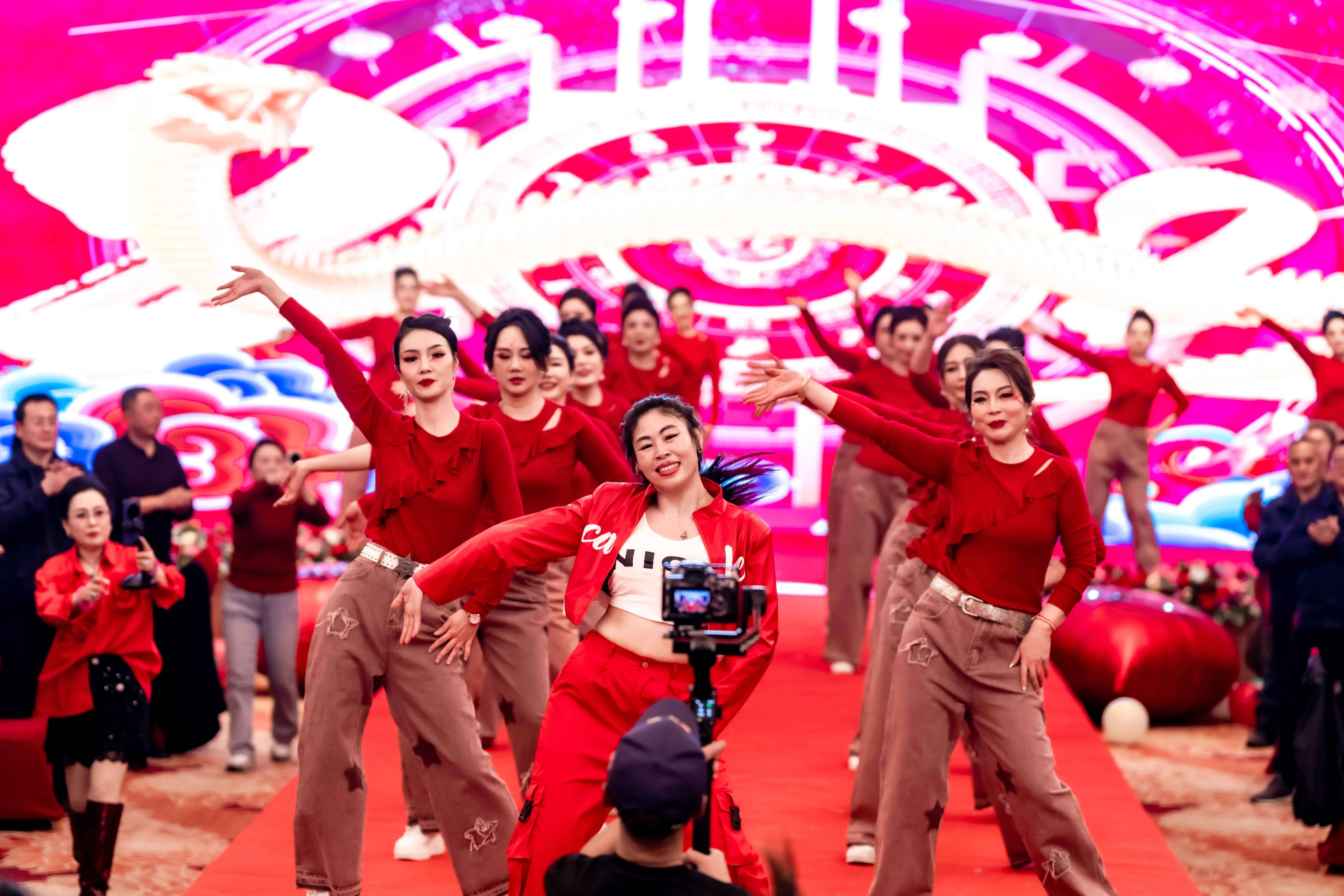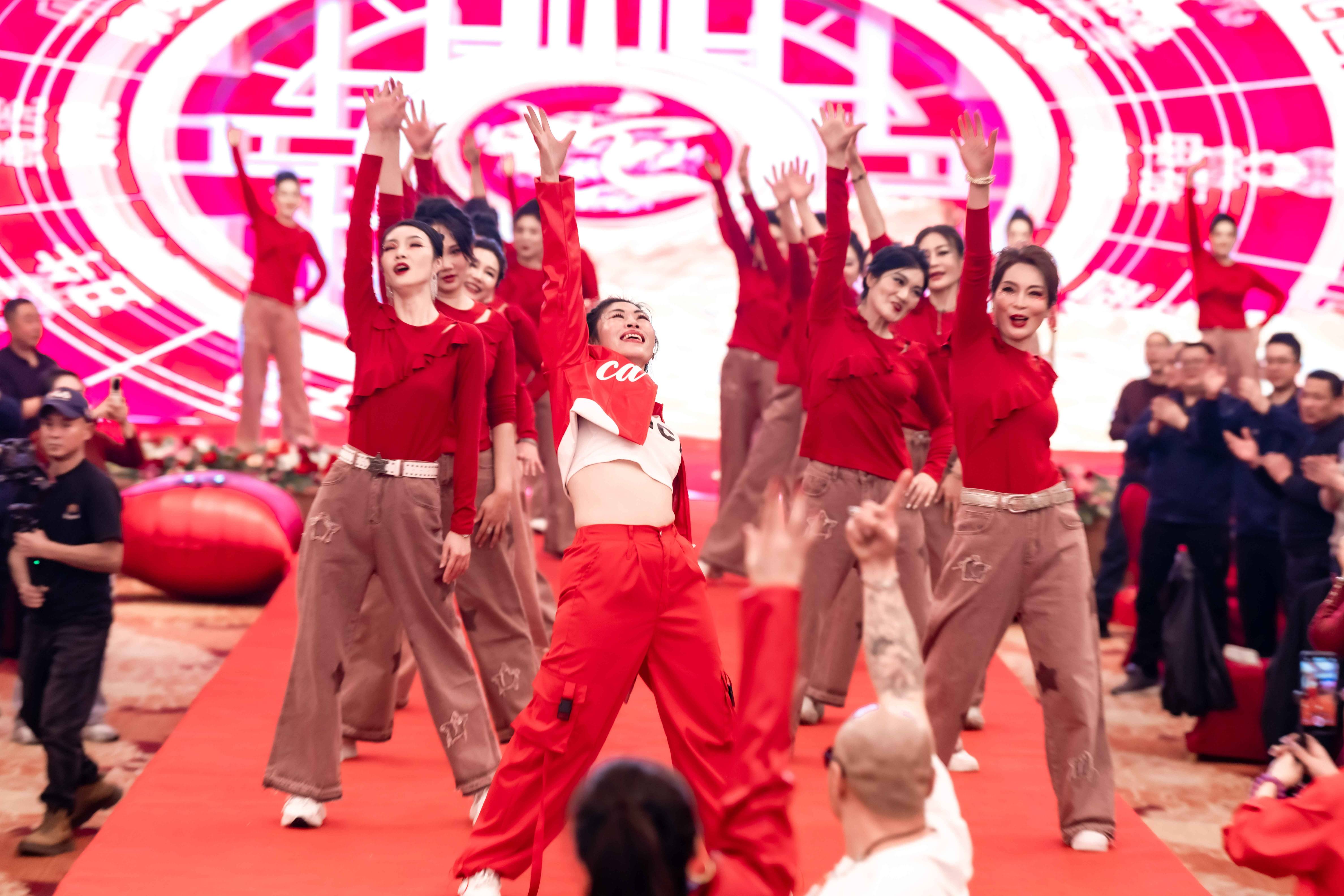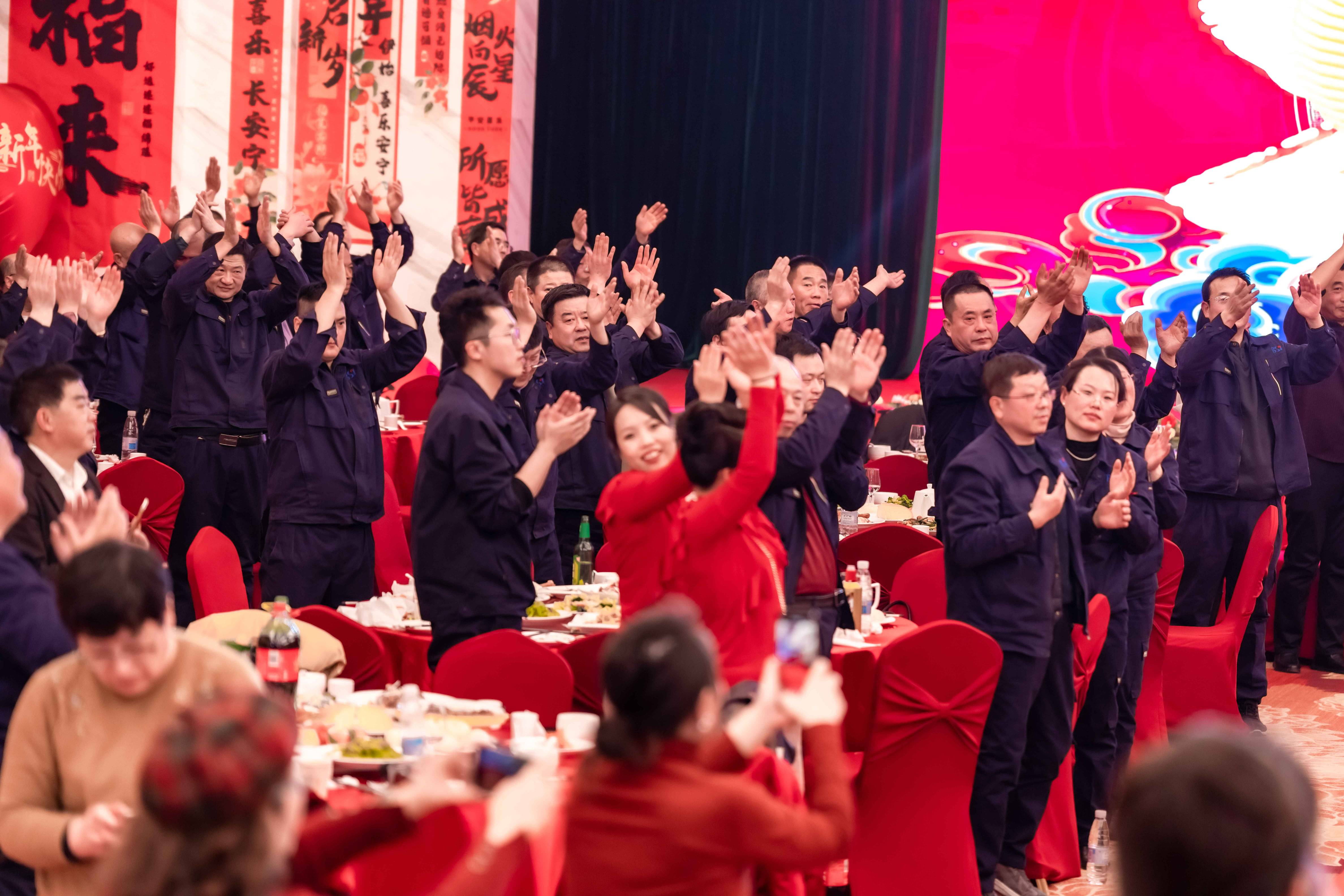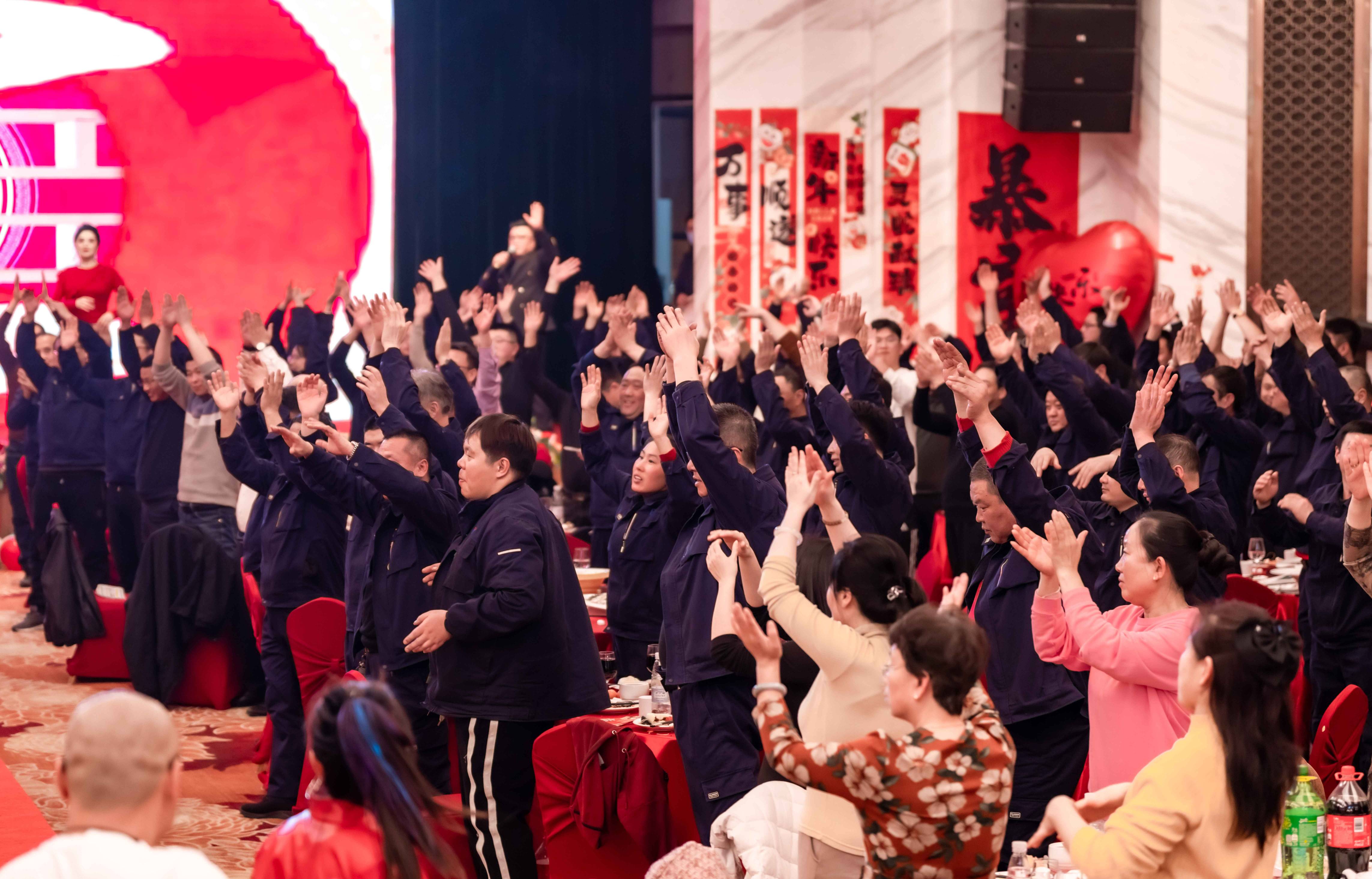 当“大家一起来”的音乐声在年会现场激昂奏响,整个场地瞬间被点燃,全员参与的热闹场景就此拉开帷幕。台下,欢呼声、掌声此起彼伏,大家随着音乐的节奏轻轻摇摆身体,沉浸在欢乐的氛围中。
